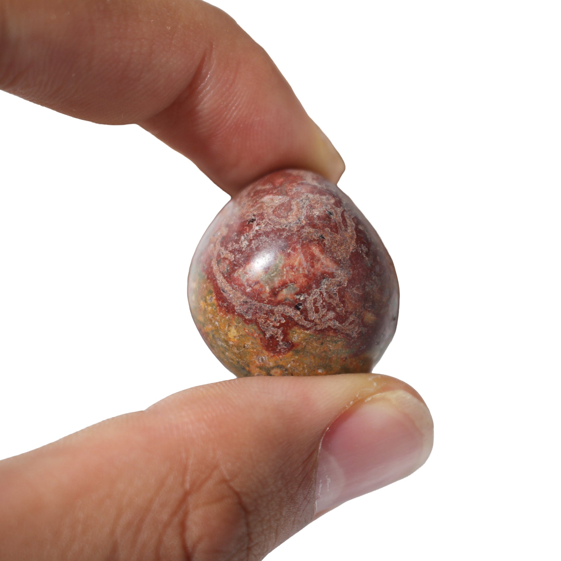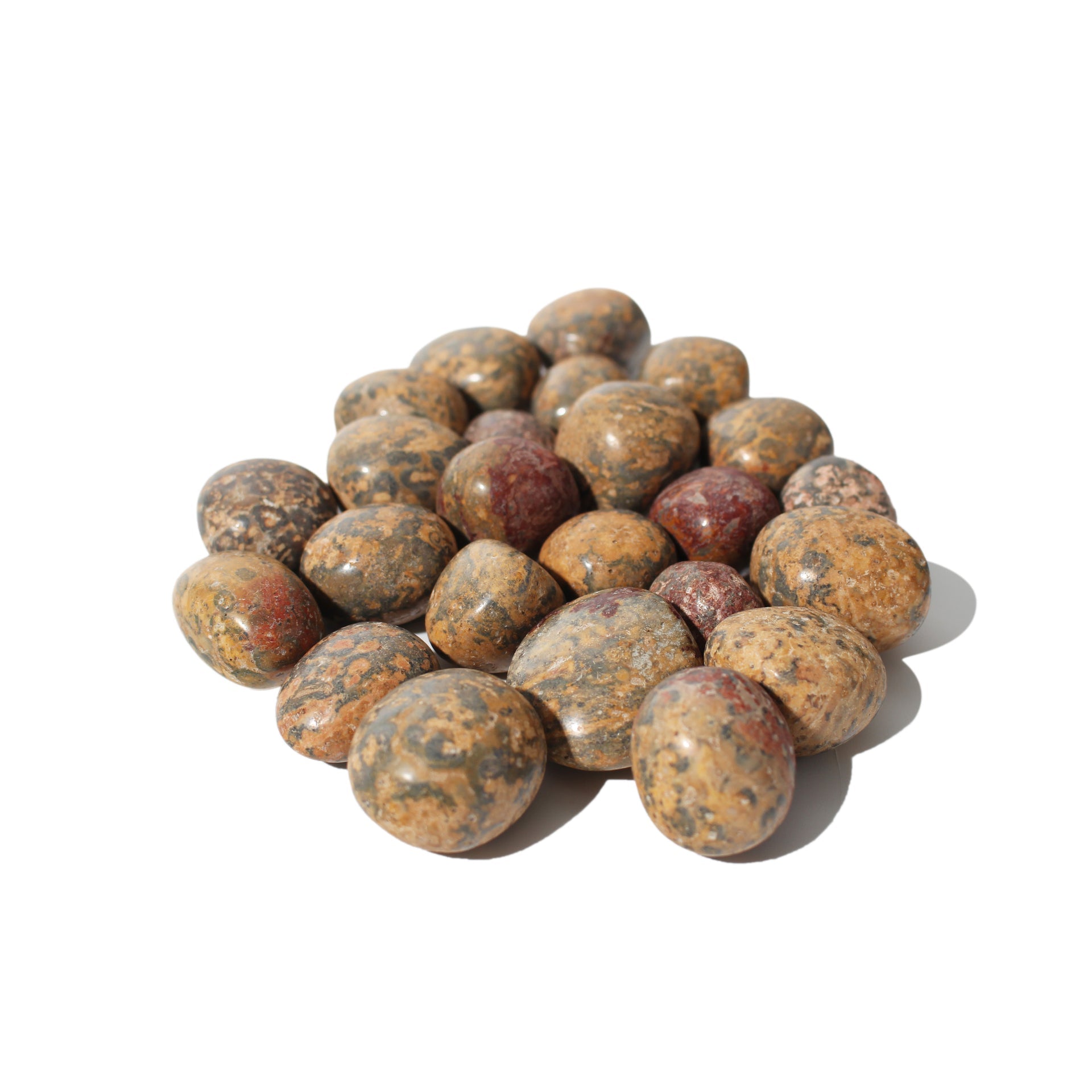 These Red Leopardskin Jasper Tumbled Stones showcase bold patterns in deep reds, warm browns, and sandy creams, each polished smooth with a wild, earthy beauty. Every stone feels primal, grounding, and protective.