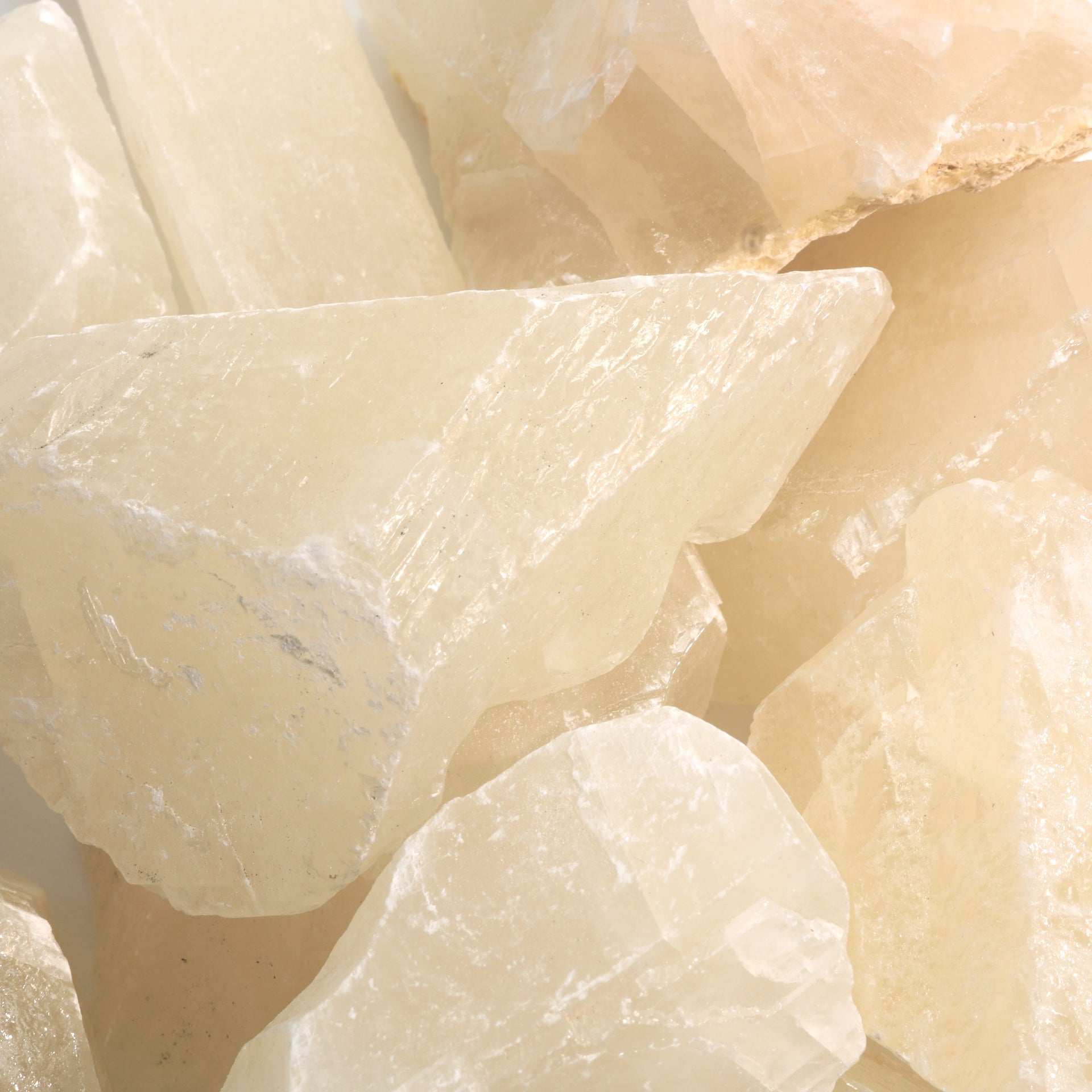 It is a calcium carbonate industrial source used in plaster, cement, and pigments. Improves patience and responsibility, decreases stress and anger, directs energy toward productive goals, and balances emotions. Although it is too delicate for jewellery, it is carved into ornamental artifacts such as bookends and figurines.