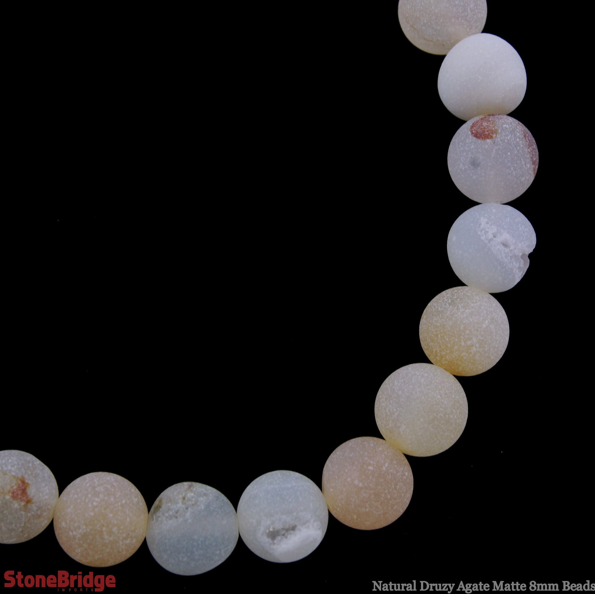 Druzy Agate Natural Matte - Round Strand 15" - 8mm