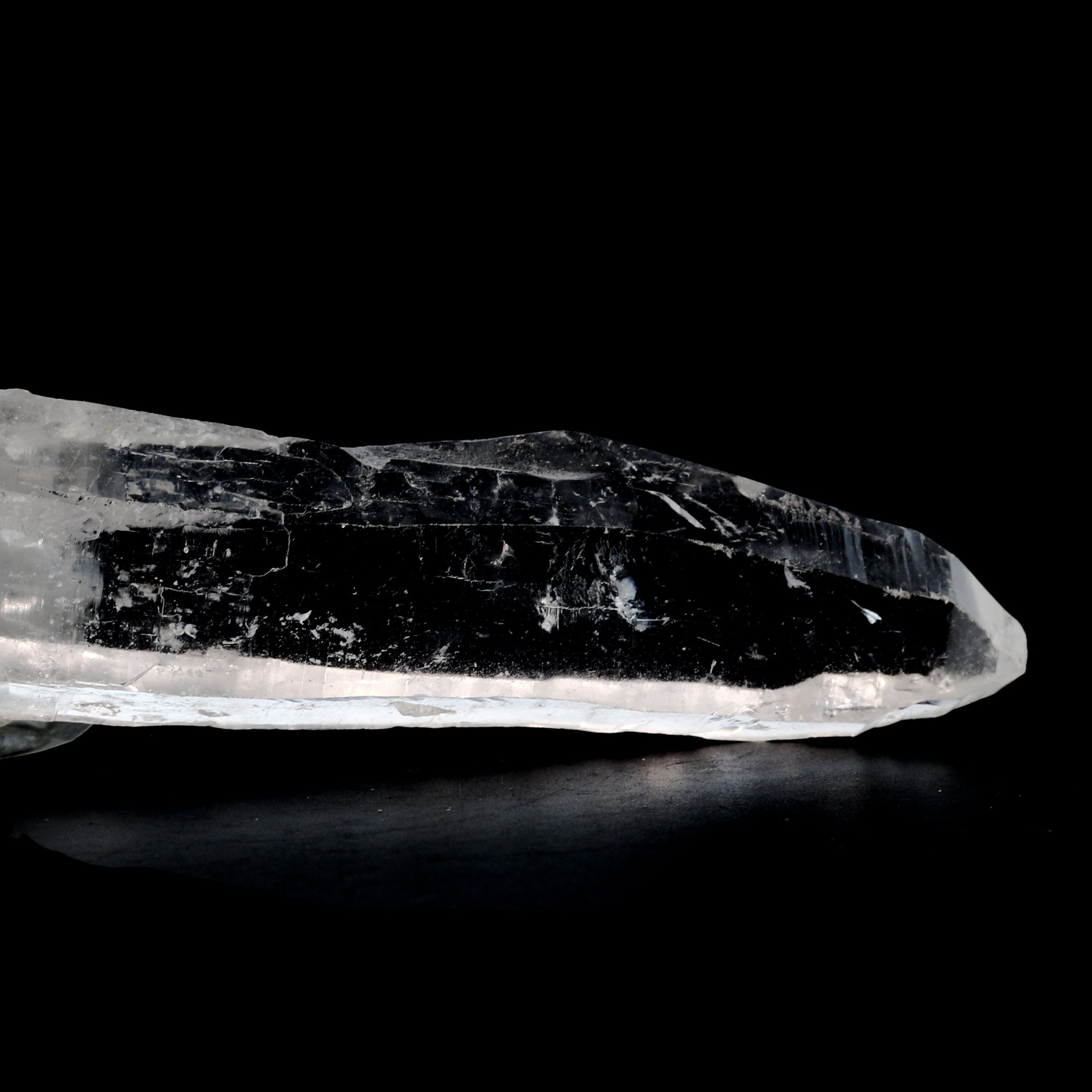 Laser quartz points are clear quartz naturally forming crystal points that tapers to the end. They are usually skinnier and longer than other quartz points. This is a high quality crystal with a a single point. This product contains a transparent affect allowing light to pass through the object allowing you to distinctly see behind it, Exhibiting excellent transparency and good termination.