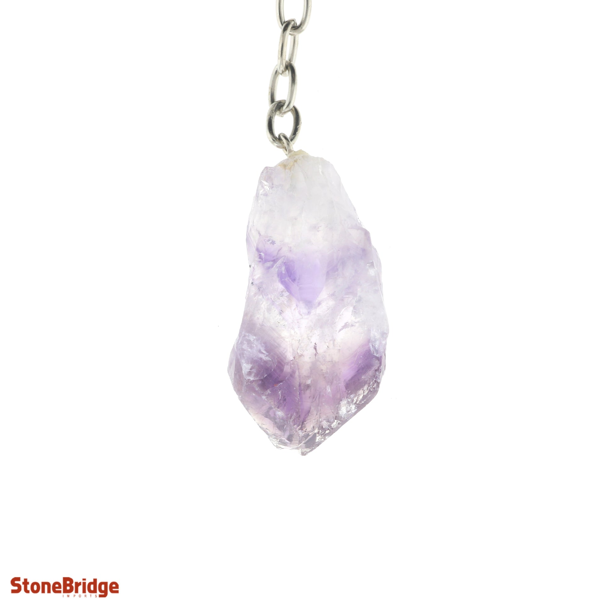 Amethyst point on a keychain perfect for your keyring, with natural colours in light to dark tones of purple.