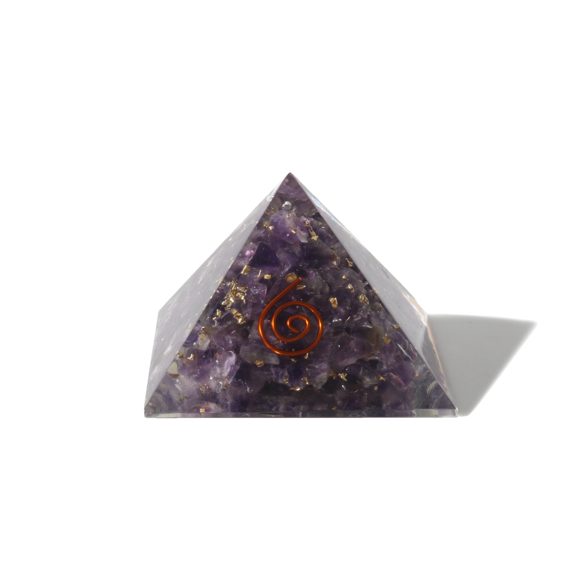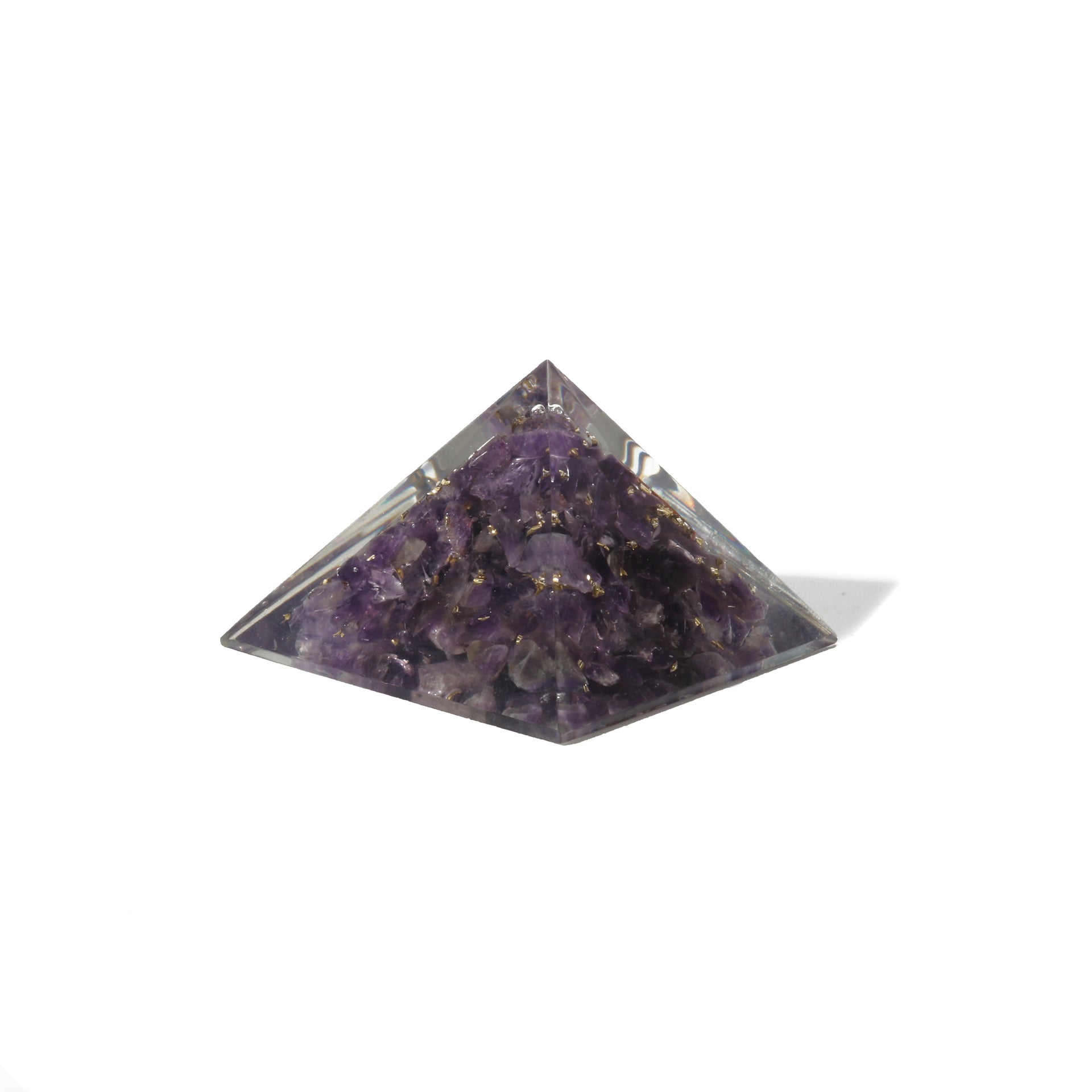 Elevate your space with the serene energy and spiritual protection offered by our Amethyst Orgone Pyramid, crowned with a potent Amethyst point. This meticulously crafted pyramid combines the metaphysical power of Amethyst, known for its calming and intuitive properties, with the energy harmonizing qualities of Orgone, creating a powerful tool for meditation, healing, and environmental enhancement.