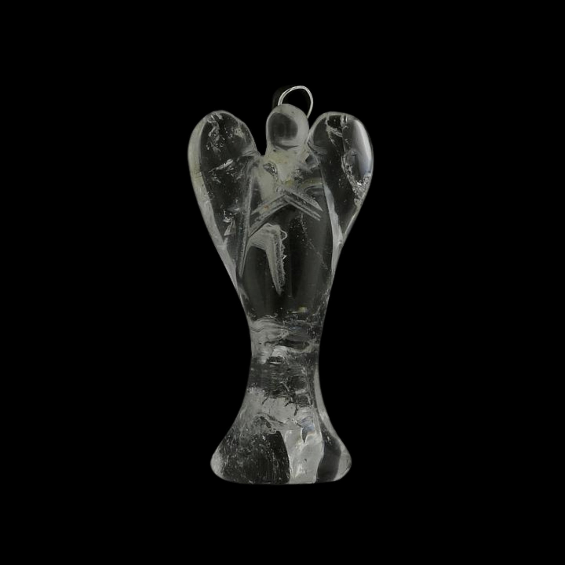 Known as the "Master Healer," Clear Quartz is revered for its high vibrational clarity and versatility. This pendant features an angelic figure carved from Clear Quartz, symbolizing protection, peace, and spiritual guidance.