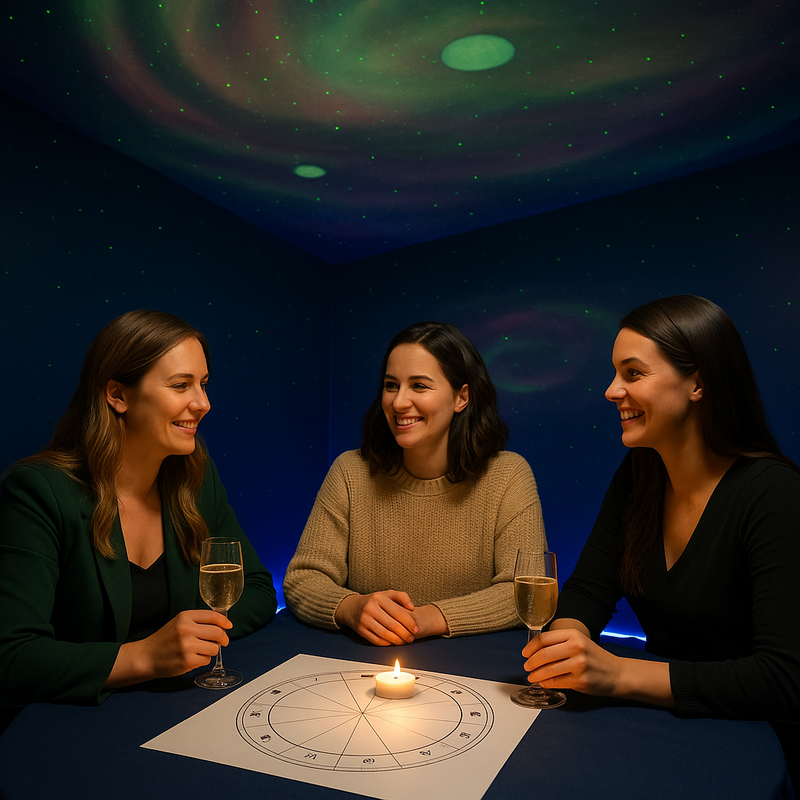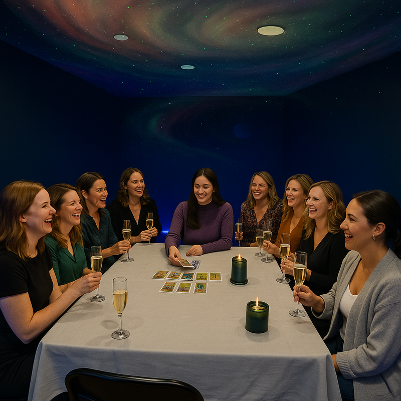 If your birthday or bachelorette is already a cosmic moment… celebrate it somewhere that matches the energy — cards, candles, crystals, and your closest people.