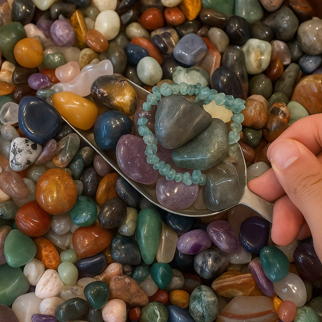 Create your own gemstone bracelet with intention. Choose from a variety of crystals, and design a piece that holds meaning long after the night ends.