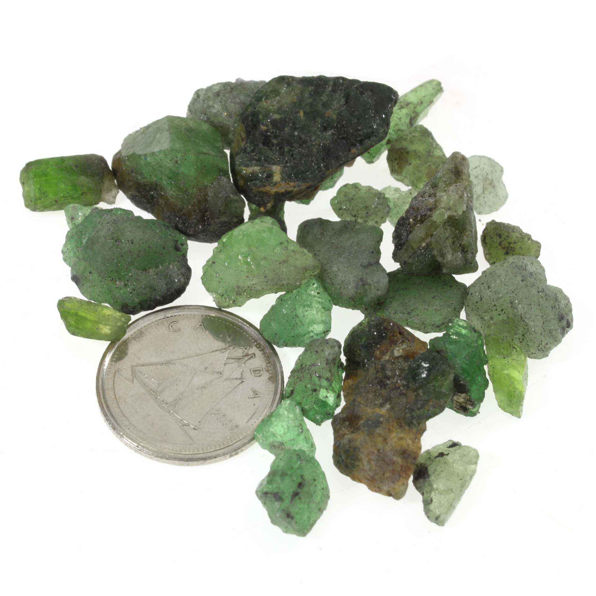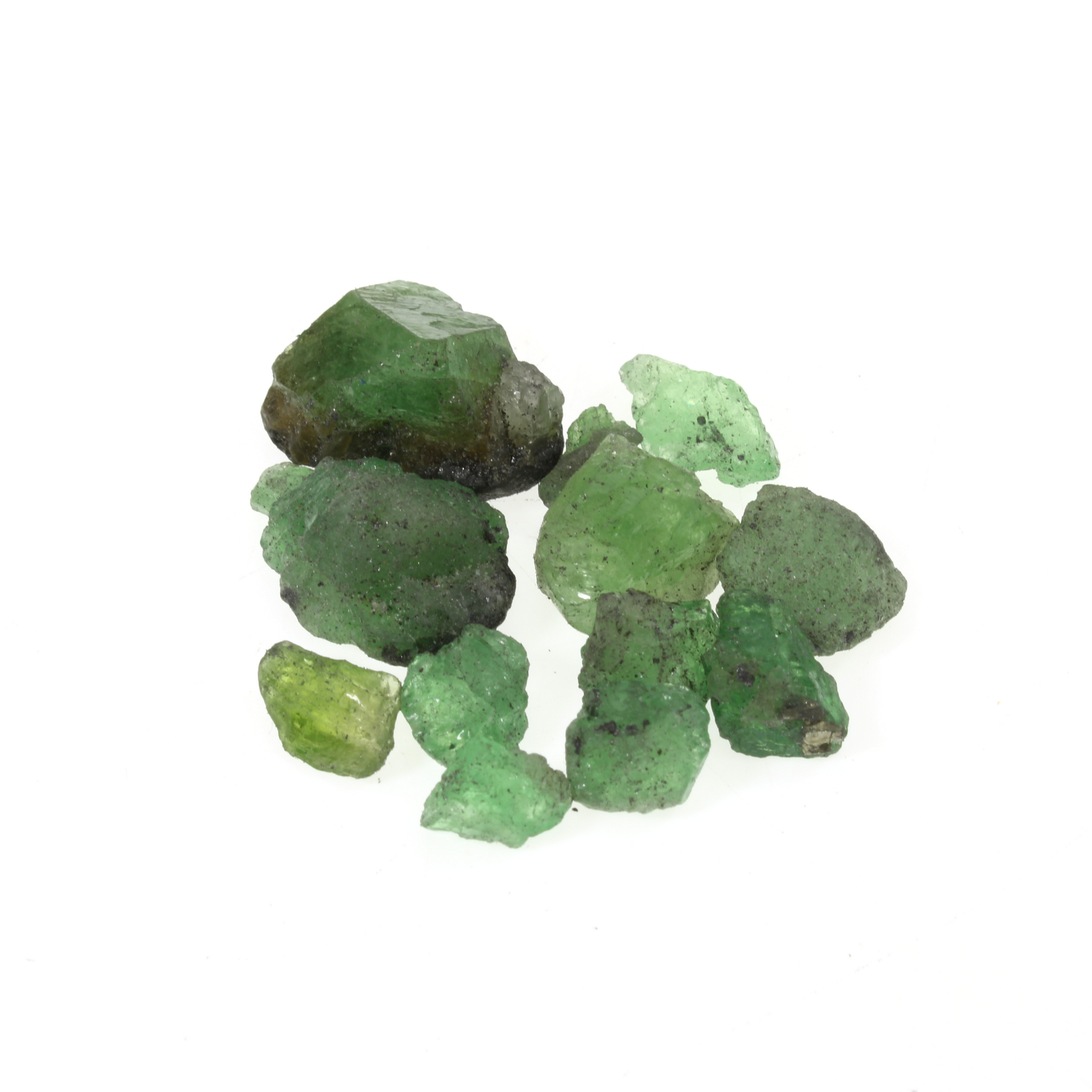 Tsavorite colour comes primarily from, Vanadium and chromium. An emerald-green type of grossular garnet, Tsavorite is considerably prevalent and a costly variety of garnet. These rough crystals are appropriate for jewelry making it can be faceted, sized, and arranged in many ways. These rough gemstones are completely natural and highly desired by collectors or enthusiasts. Pieces up to one carat are common, stones over two carats are rare, and the price increases exponentially per carat. Most valued pieces of Tsavorite are when the colour is deep green or emerald-like.